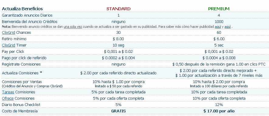 Al registrate en Clixsense, que por cierto es GRATUITO, tendrás una cuenta Standard con la que ya puedes empezar a ganar dinero, pero si quieres ganar mas y estas dispuesto a invertir, entonces deberías cambiarte a una cuenta Premium.